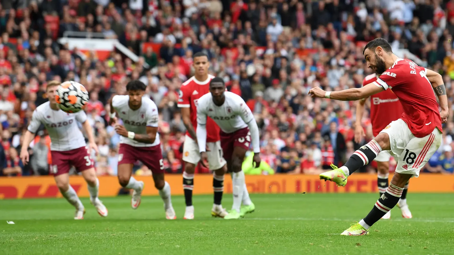 Penalti sempat didapat MU di babak pertama. Fernandes maju jadi eksekutor, namun tendangannya melayang.